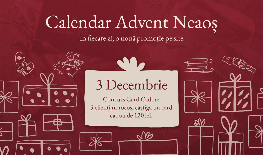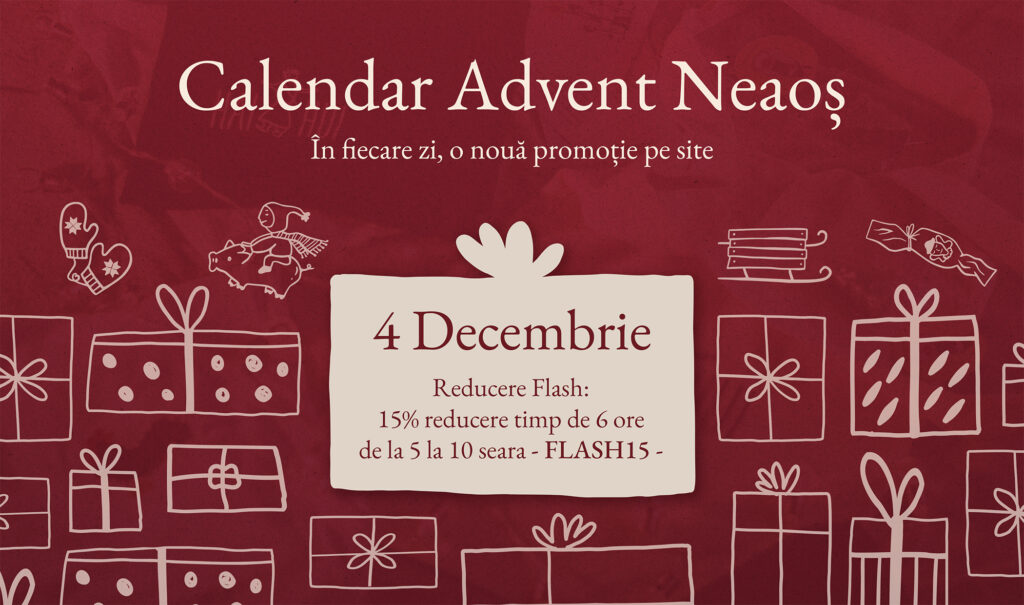 În fiecare zi a lunii decembrie postăm o nouă promoție pe site! Te poți aștepta la reduceri, produse gratuite, tombole sau giveaway-uri.